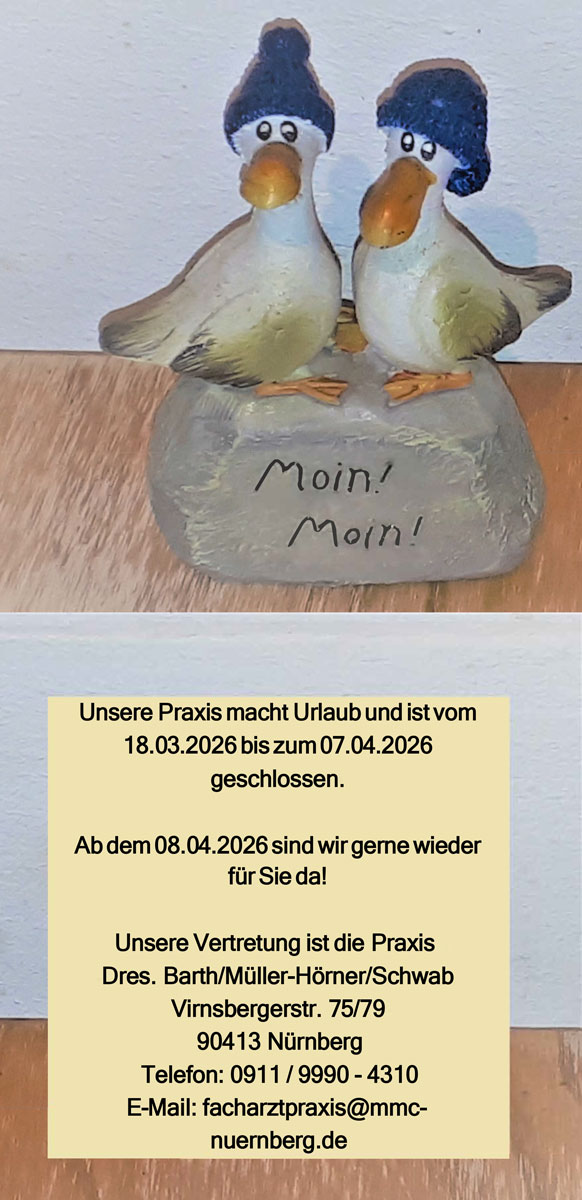 Auf Grund nur noch eingeschränkter Aufnahme-Kapazitäten von Neupatienten, können Terminanfragen nur noch mit dem Kontaktformular auf der Homepage bearbeitet werden.